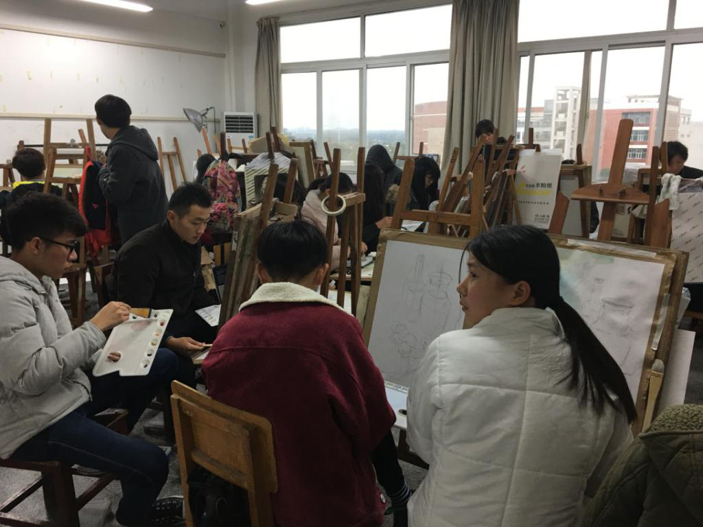 (1)艺术通识教室11个,建筑面积660平米,有一批画板画架、各种材质静物、石膏像等,学生在画室进行基础课程的训练,练习线条的表现力、色彩的构成能力、物体光源的体现。