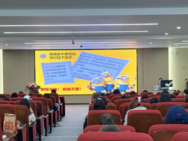 讲座中,韩怡婷结合高校新生常见安全风险,以真实案例为切入点,围绕电信网络诈骗、校园消防安全、人身财产保护等核心内容展开讲解。她通过拆解“刷单返利”“虚假购物”等典型诈骗套路,手把手教学生识别诈骗话术,提醒学生切勿轻信“天上掉馅饼”,遇可疑情况及时联系辅导员或报警。