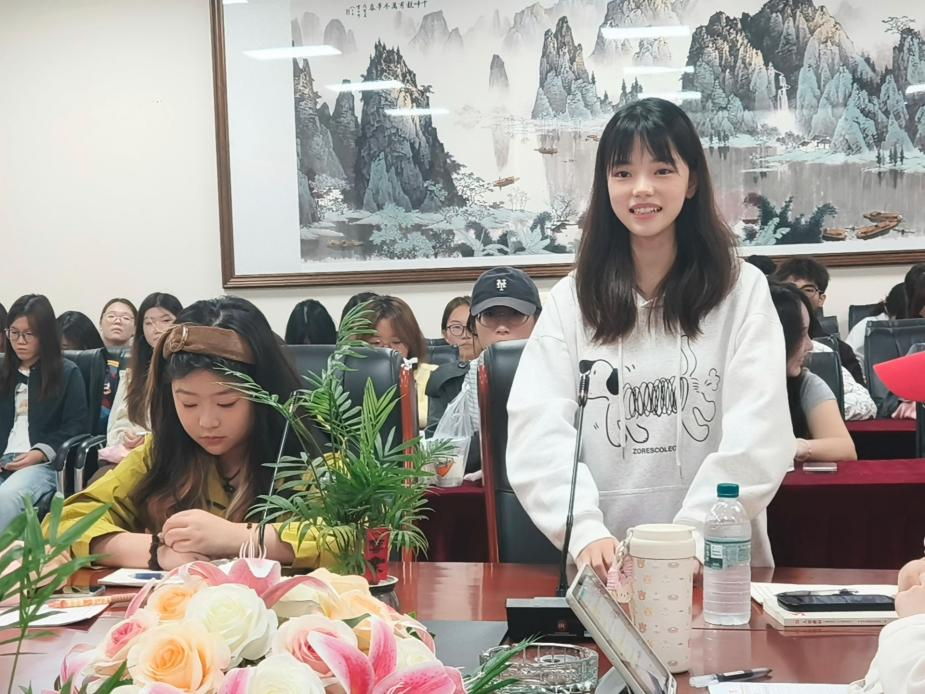 活动伊始,谢锦贤、刘福盈同学领读习语,带领大家深入学习新时代下习近平对青年的期望,深刻领会习近平总书记对青年“怀爱国之心、立报国之志、增强国之能,把个人奋斗同国家前途命运紧紧联系在一起”的殷切期望。苟慧怡与余晨轩同学则带着大家一同聚焦学习新时代美育教育的相关要求。周怡畅同学表示,“通过学习更加明确了自己作为新时代青年的使命,今后将不懈奋斗。”
