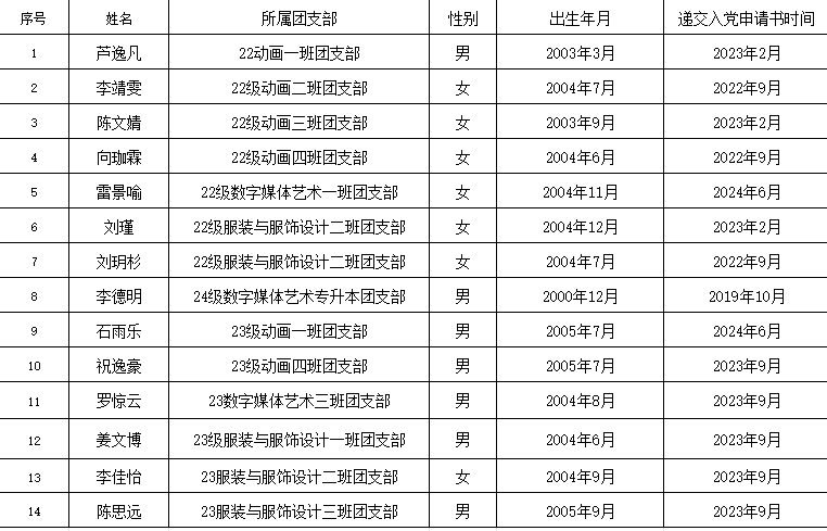 根据《中国共产党发展党员工作细则》要求,结合《williamhill威廉希尔官网共青团推优入党工作实施办法》等相关规定及要求,按照共青团推优工作程序,经个人申请,团支部评议,分团委核查以及校团委审批,以下14名同学将确定为本次优秀团员拟作为党的发展对象,名单如下: